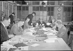 On 5 May 1946, the Daily Mail celebrated its Golden Jubilee. Winston Churchill was the chief guest at the banquet and toasted it with a speech.[62] Newsprint rationing in the Second World War had forced the Daily Mail to cut its size to four pages, but the size gradually increased through the 1950s.[62]