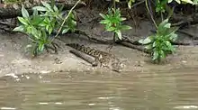 The park supports more than 430 bird species. The wompoo fruit-dove is one of six species of pigeon that live in the park[1][2] as well as significant populations of the endangered cassowary, a flightless bird of substantial size. The buff-breasted paradise kingfisher is a seasonal visitor. Mammals include the striped possum, Daintree River ringtail possum, brown bandicoot, long-nosed bandicoot, musky rat-kangaroo, Bennett’s tree kangaroo, swamp wallaby, platypus and short-beaked echidna. At least 23 species of reptile and 13 species of amphibian can be found in the park.[7][8][9] Among the reptiles present are Boyd's forest dragon, eastern water dragon, chameleon gecko, northern leaf-tailed gecko, the scrub or amethystine python, keelback, and the green and northern tree snakes. Frogs found in the park include the Australian lacelid, white-lipped treefrog, colourful-eyed treefrog and common mist frog. The introduced cane toad is also present in the park.
