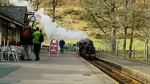 Dalegarth railway station is the easterly terminus of the 15" gauge Ravenglass & Eskdale Railway in Cumbria, England.[1] It has a café and shop for passengers, along with a run-round loop, turntable and siding for trains. It is located next to the Whillan Beck, a tributary of the River Esk flowing from the isolated Burnmoor Tarn.