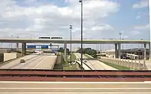 The DFW Airport area is served by International Parkway (partially State Highway 97 Spur), which runs through the center of the airport, connecting to Airport Freeway (State Highway 183) on the southern side of the airport and John W. Carpenter Freeway (State Highway 114) on the northern side. International Parkway continues north of State Highway 114, carrying the State Highway 121 designation for a short while until its interchange with the Lyndon B. Johnson Freeway (I-635), where State Highway 121 continues north as the Sam Rayburn Tollway.