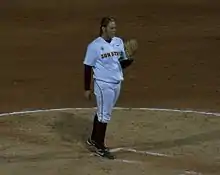 Dallas Jade Escobedo (born April 12, 1992) is a Mexican-American, former collegiate All-American, professional right-handed softball pitcher and coach originally from Glendale, Arizona.[1][2][3]< She played college softball for the Arizona State Sun Devils in the Pac-12 Conference beginning in 2011-14, where she led them to the 2011 Women's College World Series title and ranks in several pitching categories for both institutions.[4][5] She is currently the pitching coach at Cal State Fullerton. She was selected number one overall by the Pennsylvania Rebellion in the 2014 National Pro Fastpitch draft, Escobedo played for the Rebellion from 2014 to 2016 and the Texas Charge in 2017, currently ranking in career strikeout ratio for the league. She played softball for both Team USA and Team Mexico, leading the latter to qualify for the postponed 2020 Summer Olympics.