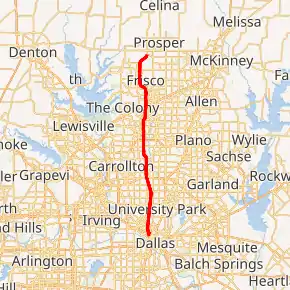 The Dallas North Tollway (DNT, or simply the Tollway) is a 30.2-mile (49 km) controlled-access toll road operated by the North Texas Tollway Authority (NTTA), which runs from Interstate 35E near downtown Dallas, Texas (USA), to U.S. Highway 380, in Frisco, Texas.