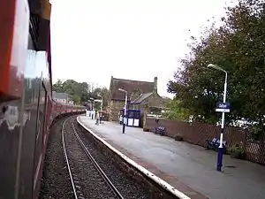 The station is operated by Northern. It is unstaffed, with a card only ticket machine on the southbound side - passengers have to obtain a promise to pay notice to pay by cash on board the train.[5] Digital signs and timetable posters are provided on each platform for train running information purposes. The station buildings are no longer in rail use, though shelters are located on each side. Access to the platforms is either via steps from the over bridge at the south end or via paths from adjacent public roads (the latter are step-free).[6]