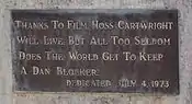 Blocker's remains were interred in a family plot in Woodmen Cemetery, in De Kalb, Texas.[1] The common grave site is marked by a plain stone with the name "B. Dan D. Blocker" engraved; three family members are buried beside him – his father, mother, and sister.[12][13]