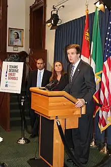 In February 2011, Patrick, who at the time was vice chairman of the Texas senate's Committee on Education, spoke in favor of cutting an unspecified number of non-teaching positions from the state's public school districts, citing positions such as "math department supervisors" or "curriculum experts".[74][75] At the time, Patrick cited a statistic later determined to be misleading by PolitiFact.com that Texas's 1,200+ public school districts, considered as a group, are the fifth-largest employer in the world.[76]