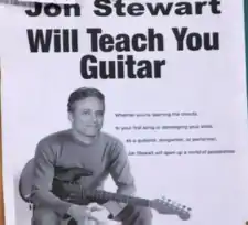 - On the September 20, 2010 episode of The Daily Show, Jon Stewart showed the audience a bulletin board featuring many of his ads - one of these was a satire that showed a picture of Stewart's head superimposed on Smith's body, that said 'Jon Stewart Will Teach You Guitar'.[5]