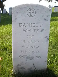 White was buried at Golden Gate National Cemetery in San Bruno, California, with a traditional government-furnished headstone issued for war veterans. He was survived by his two sons, an infant daughter, and his widow.[13]