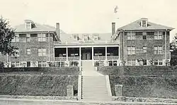 The building, constructed in 1925, was of a joisted masonry construction consisting of two stories with Colonial Revival detailing. The main entrance included a long terraced walkway beginning from the West King Street sidewalk leading to an entrance veranda. The building itself sat upon 10 acres (4.0 ha).[2]