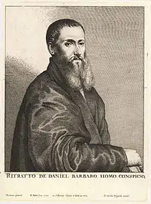 Daniele Matteo Alvise Barbaro (also Barbarus) (8 February 1514 – 13 April 1570)[1] was an Italian architect, writer on architecture, and translator of, and commentator on, Vitruvius.[2] He also had a significant ecclesiastical career.