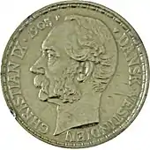 The Danes formed a Board of Trade in 1668 and secured a commercial treaty with Britain, providing for the unmolested settlement of uninhabited islands, in July 1670. The Danish West India Company was organized in December and formally chartered by King Christian V the next year on March 11, 1671.[4] Jørgen Iversen Dyppel, a successful trader on Saint Christopher, was made governor and the king provided convicts from his jails and two vessels for the establishment of the colony, the yacht Den forgyldte Krone[5][6] and the frigate Færøe.[7][8] Den forgyldte Krone was ordered to run ahead and wait but ended up returning to Denmark after the Færøe under Capt. Zacharias Hansen Bang was delayed for repairs in Bergen. The Færøe completed her mission alone, establishing a settlement on St. Thomas on May 25, 1672. From an original contingent of 190 – 12 officials, 116 company "employees" (indentured servants), and 62 felons and former prostitutes – only 104 remained, 9 having escaped and 77 having died in transit. Another 75 died within the first year, leaving only 29 to carry on the colony.[3]