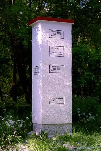 To counteract the effects of the flood control measures, beginning in 2002 individual side channels were tied in with the main channel again--at least at high water times--via Gewässervernetzungen ("water crossings"), which lower or remove the levees protecting those channels.
