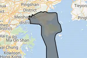 Dapeng New District (Cantonese: [tʰaj pʰuŋ sɐn kʰyː]) is an administrative area under the jurisdiction of Longgang District in Shenzhen, Guangdong. It has a land area of 294.18 square kilometres (113.58 sq mi), a coastline of 133.22 kilometres (82.78 mi) and a total population of about 180,000. The district was created on 30 December 2011 with its administration center located on 5 Dapeng Street, Zhongshan Road.[1]