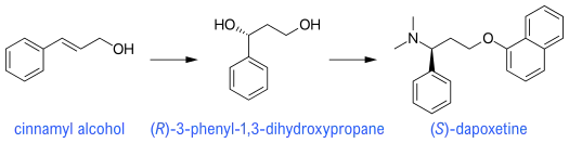 - Venkatesan, K.; Srinivasan, K.V. (2008). "Stereoselective synthesis of (S)-dapoxetine starting from trans-cinnamyl alcohol". Arkivoc. 2008 (16): 302–310. doi:10.3998/ark.5550190.0009.g28.