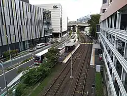 In January 1996, the Lilyfield to Central section of the Metropolitan Goods line closed. Much of the alignment was reutilised by the Inner West Light Rail that opened to Wentworth Park in August 1997 and was extended to Lilyfield in August 2000 and on to Dulwich Hill in March 2014.[9][10][11][12] The Sydney Monorail ran adjacent to the light rail between Convention and Exhibition stations.[13]