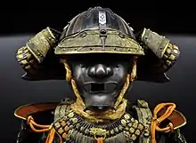 The original design of Darth Vader's costume did not originally include a helmet. The idea that Vader should wear a breathing apparatus was first proposed by concept artist Ralph McQuarrie during preproduction discussions for Star Wars with George Lucas in 1975. McQuarrie stated that Lucas's artistic direction was to portray a malevolent figure in a cape with samurai armor. "For Darth Vader, George just said he would like to have a very tall, dark fluttering figure that had a spooky feeling like it came in on the wind."[44] McQuarrie noted that the script indicated that Vader would travel between spaceships and needed to survive in the vacuum of space, and he proposed that Vader should wear some sort of space suit. Lucas agreed, and McQuarrie combined a full-face breathing mask with a samurai helmet, thus creating one of the most iconic designs of space fantasy cinema.[45][44] McQuarrie's 1975 production painting of Darth Vader engaged in a lightsaber duel with Deak Starkiller (a character prototype for Luke Skywalker) depicts Vader wearing black armor, a flowing cape and an elongated, skull-like mask and helmet. Its similarity to the final design of Vader's costume demonstrates that McQuarrie's earliest conception of Vader was so successful that very little needed to be changed for production.[46]