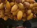 - Mazafati or Mozafati (Persian: مضافتی, "Suburban/Peripheral") – It is a dark, fleshy and sweet date of medium size with a relatively high moisture content and is suited for fresh consumption, i.e. not dried. At a temperature of −5 degrees Celsius (23 °F) it can be kept for up to 2 years. It is grown in Iran, in particular in Kerman province, and often named "Bam date", after the city of Bam in that province.[33]