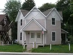 The David Garland Rose House was built circa 1860 in Valparaiso, Indiana, United States. David Rose was a local businessman. This Gothic Revival house is unusual in that it is eight-sided, an octagon. Each of the eight gables include decorated wood panels. Covered porches have been added to three sides.