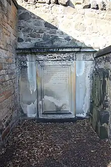 Laing was struck with paralysis in October 1878 while in the Signet Library, and it is said that, on recovering consciousness, he looked about and asked if a proof of Wyntoun had been sent from the printers. He died a few days afterwards, aged 85, at his home, 13 James Street in Portobello.[5] He is buried in New Calton Burial Ground in east Edinburgh. The grave lies on the north wall near the northeast corner.