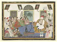 As the official British Resident at Delhi, David Ochterlony adopted and thoroughly embraced Indo-Persian culture of Mughals. He was reputed to have thirteen Indian concubines (as seen by the British) or wives (as seen by others). Every evening, he used to take all thirteen of his wives on a promenade around the walls of the Red Fort, each on the back of her own elephant.[8]