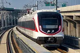 Daxing Airport Express[8][lower-alpha 1] of the Beijing Subway (Chinese: 北京地铁大兴机场线; pinyin: Běijīng Dìtiě Dàxīng Jīchǎng Xiàn) is an airport rail link from Caoqiao (located at the Southern 3rd Ring Road) to the Beijing Daxing International Airport. It is colored blue on subway maps.[9] The line opened on September 26, 2019.[6]