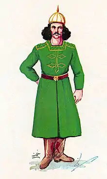 The descendants of Gushnasp were still ruling until in ca. 520, when Kavadh I (r. 488-531) appointed his eldest son, Kawus, as the king of the former lands of the Gushnaspid dynasty.[6] In 522, Kavadh I sent an army under a certain Buya (known as Boes in Byzantine sources) against Vakhtang I of Iberia. This Buya was a native of Daylam, which is proven by the fact that he bore the title wahriz, a Daylamite title also used by Khurrazad, the Daylamite military commander who conquered Yemen in 570 during the reign of Khosrow I (r. 531-579),[6] and his Daylamite troops would later play a significant role in the conversion of Yemen to the nascent Islam.[4] The 6th-century Byzantine historian Procopius described the Daylamites as;