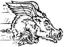 The current squad logo, which gives the squad its nickname of Flying Pigs, is a winged wild boar, which was chosen as a merger of the Argylls’ boar logo and the Wright Patt Jets' jet aircraft logo.