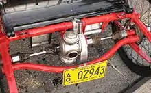 Most models of the Kawasaki MULE line of utility vehicles feature a leaf-sprung DeDion rear suspension with a distinctively curved tube axle that clears the rear subframe to provide 50mm of wheel travel.[8] Benefits include simplicity, durability, compactness and a relatively low liftover height for the cargo bed.