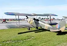 The de Havilland DH.82 Tiger Moth is a 1930s British biplane designed by Geoffrey de Havilland and built by the de Havilland Aircraft Company. It was operated by the Royal Air Force (RAF) and many other operators as a primary trainer aircraft. In addition to the type's principal use for ab-initio training, the Second World War saw RAF Tiger Moths operating in other capacities, including maritime surveillance and defensive anti-invasion preparations; some aircraft were even outfitted to function as armed light bombers.