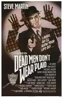 Dead Men Don't Wear Plaid is a 1982 neo-noir comedy-mystery film, directed by Carl Reiner. Starring Steve Martin and Rachel Ward, the film is both a parody of and a homage to film noir and the pulp detective movies of the 1940s. The title refers to Martin's character telling a story about a woman obsessed with plaid in a scene that was ultimately cut from the film.[2]