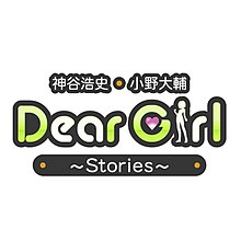 Hiroshi Kamiya and Daisuke Ono's Dear Girl: Stories (Japanese: 神谷浩史・小野大輔のDearGirl〜Stories〜, Hepburn: Kamiya Hiroshi, Ono Daisuke no Dear Girl: Stories, also known as Dear Girl: Stories) is a Japanese radio program hosted by voice actors Hiroshi Kamiya and Daisuke Ono. Dear Girl: Stories is broadcast via Nippon Cultural Broadcasting since 2007. The program later appeared on Radio Osaka and Chō! A&G+ beginning in 2008.