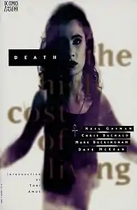 Death: The High Cost of Living is a comic, written by Neil Gaiman with art by Chris Bachalo and Mark Buckingham. It is a spin-off from Gaiman's best-selling Vertigo Comics series The Sandman, featuring the Sandman (Dream)'s elder sister, Death of the Endless. Its premise is that Death takes human form once a century, to remain grounded and in touch with humanity,[1] an idea touched upon in several other media, for example in the 1934 film Death Takes a Holiday and in the Terry Pratchett novel Reaper Man.
