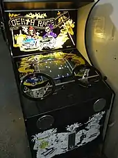 Death Race is an arcade game developed and released by Exidy in the United States, first shipping to arcade distributors on April 1, 1976.[1] The game was a modification of Exidy's 1975 game Destruction Derby in which players crashed into cars to accrue points. In Death Race, the objective became to run into "gremlins" to gain score. The game could be played with one or two players controlling different cars. The original working title for the game which appeared on some early advertisements was Death Race 98.[1]