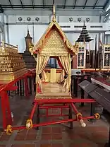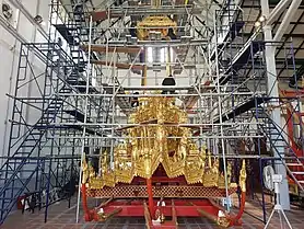 ![]() The royal urn of the King Bhumibol Adulyadej, being transported upon the Golden Palanquin with Three Poles (Phra Yannamas Sam Lam Khan), in the first procession of the king's royal cremation ceremony on 26 October 2017 | |