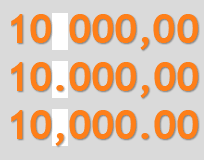 - In Estonia, currency numbers often use a dot "." as the decimal separator, and a space as a thousands separator. This is most visible on shopping receipts and in documents that also use other numbers with decimals, such as measurements. This practice is used to better distinguish between prices and other values with decimals. An older convention uses dots to separate thousands (with commas for decimals) — this older practice makes it easier to avoid word breaks with larger numbers.