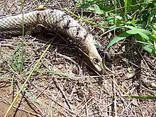 Decomposition is largely inhibited during advanced decay due to the loss of readily available cadaveric material.[12] Insect activity is also reduced during this stage.[9] When the carcass is located on soil, the area surrounding it will show evidence of vegetation death.[12] The CDI surrounding the carcass will display an increase in soil carbon and nutrients, such as phosphorus, potassium, calcium, and magnesium;[11] changes in pH; and a significant increase in soil nitrogen.[14]