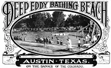 Deep Eddy Pool is a historic, man-made swimming pool in Austin, Texas. Deep Eddy is the oldest swimming pool in Texas and features a bathhouse built during the Depression era by the Works Progress Administration. The pool began as a swimming hole in the Colorado River, became a resort in the 1920s, and is today a popular swimming pool operated by the City of Austin.