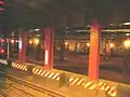 The underground terminal for the subway adjacent to the trolley terminal opened on September 16, 1908. The station initially contained only two tracks which ended at the west end of the station. It also had an additional southern side platform adjacent to the trolley terminal, with the station organized in a Spanish solution.[8] The station was rebuilt for through service from 1911 to 1913 for the Centre Street Subway to extend to Chambers Street. The rest of the subway line has four tracks while there was room at Essex Street station for only three tracks and two platforms. There is provision for a fourth track to run through the trolley terminal area and join the subway west of the trolley terminal, should a four-track subway station be wanted.