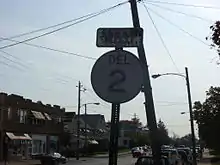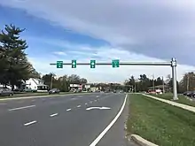 The Christiana Parkway around the southern edge of Newark was completed in September 1983.[23][24] By 1990, DE 2 was realigned to bypass Newark along Christiana Parkway, which carried portions of DE 4 and DE 896, Chestnut Hill Road, which also carried DE 4, and South Chapel Street and Library Avenue, which was also DE 72. With this realignment, the former route through Newark became DE 2 Bus.[25] In 2013, the Delaware Department of Transportation (DelDOT) proposed the renumbering of routes in and around Newark. The plan called for DE 2 to start at DE 273 (Main Street) east of Newark instead of at the Maryland state line as well as the removal of the DE 2 Bus. designation through Newark. In addition, the portion of Elkton Road between the Maryland border and the Christiana Parkway was to be designated as DE 279. The goal of the project was to "simplify the route designations in Newark, reduce sign clutter, and reduce sign maintenance costs." The changes were completed in the middle part of 2013.[26] In September 2015, the concurrency with DE 41 in Prices Corner was removed.[27][28]
