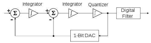 In a conventional ADC, an analog signal is sampled with a sampling frequency and subsequently quantized in a multi-level quantizer into a digital signal. This process introduces quantization error noise. The first step in a delta-sigma modulation is delta modulation. In delta modulation the change in the signal (its delta) is encoded, rather than the absolute value. The result is a stream of pulses, as opposed to a stream of numbers as is the case with pulse-code modulation (PCM). In delta-sigma modulation, accuracy of the modulation is improved by passing the digital output through a 1-bit DAC and adding (sigma) the resulting analog signal to the input signal (the signal before delta modulation), thereby reducing the error introduced by the delta modulation.