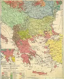 What stood behind the difficulties to properly define the nationality of the Slavic population of Macedonia was the apparent levity with which this population regarded it. The existence of a separate Macedonian national consciousness prior to the 1940s is disputed.[25][26] This confusion is illustrated by Robert Newman in 1935, who recounts discovering in a village in Vardar Macedonia[27] two brothers, one who considered himself a Serb, and the other considered himself a Bulgarian. In another village he met a man who had been, "a Macedonian peasant all his life", but who had varyingly been called a Turk, a Serb and a Bulgarian.[28] However anti-Serb and pro-Bulgarian feelings among the local population at this period prevailed.[29]