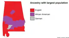 Historically, African Americans were brought to Alabama as slaves, in greatest numbers in the cotton-producing plantation region known as the Black Belt. This region remains predominantly African American, where many freedmen settled to work at agriculture after the Civil War. The northern part of the state, originally settled by small farmers with fewer slaves, is predominantly European American. The Port of Mobile, founded by the French and subsequently controlled by England, Spain, and the United States, has long had an ethnically diverse population. It has long served as an entry point for various groups settling in other parts of the state. Those citing "American" ancestry in Alabama are of overwhelmingly English extraction, however most English Americans identify simply as having American ancestry because their roots have been in North America for so long, in many cases since the early sixteen hundreds. Demographers estimate that a minimum of 20–23% of people in Alabama are of predominantly English ancestry and state that the figure is probably much higher. In the 1980 census 1,139,976 people in Alabama cited that they were of English ancestry out of a total state population of 2,824,719 making them 41% of the state at the time and the largest ethnic group.[11][12][13][14][15] There are also many more people in Alabama of Scots-Irish origins than are self-reported.[16] Many people in Alabama claim Irish ancestry because of the term "Scots-Irish", but most of the time in Alabama this term is used for those with Scottish roots, rather than Irish.[17]