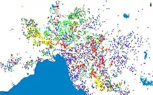 As of the 2016 census, 62% of Melburnians speak only English at home.[41] Mandarin (4.1%), Greek (2.4%), Italian (2.3%), Vietnamese (2.3%), and Cantonese (1.7%) are the most common foreign languages spoken at home by residents of Melbourne.[41]