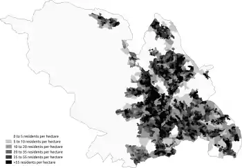 By far the largest ethnic group in Sheffield is what the 2011 census classified as White British—white people of British ancestry, who make up about 81% of the city's population, an 8% drop from 2001.[3][10] The remaining percentage of city's population includes a diverse range of ethnic backgrounds. Between the 1991 and 2001 census the minority ethnic population in Sheffield grew by more than 80%.[11]