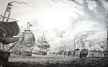 The long decades of peace came to an abrupt end during the Napoleonic Wars. Britain felt threatened by the Armed Neutrality Treaty of 1794, which originally involved Denmark and Sweden, and later Prussia and Russia. The British fleet attacked Copenhagen in 1801 (Battle of Copenhagen (1801)), destroying much of Denmark's navy. Denmark nonetheless managed to remain uninvolved in the Napoleonic Wars until 1807. The British fleet bombarded Copenhagen again that year, causing considerable destruction to the city. They then captured the entire Danish fleet so that it couldn't be used by France to invade Britain (as the French had lost their own fleet at Trafalgar in 1805), leading to the Gunboat War (1807–1814). The confiscation of the Danish navy was widely criticised in Britain.