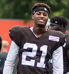 He made his professional regular season debut and first career start in the Cleveland Browns' season-opener against the Pittsburgh Steelers and recorded six combined tackles, broke up three passes, and made two interceptions during their 21–21 tie. Ward made his first career interception off a pass attempt by Steelers' quarterback Ben Roethlisberger, that was originally intended for wide receiver Antonio Brown, in the first quarter.[23] On October 7, 2018, Ward recorded five combined tackles, tied his season-high of three pass deflections, made one interception, and a blocked field goal in a 12–9 overtime win over the Baltimore Ravens. His performance earned him AFC Special Teams Player of the Week.[24] Overall, he finished his rookie season with 53 tackles, three interceptions, 11 pass deflections, one forced fumble, and two fumble recoveries in 13 games, of which he started 12.[25] He was named to the Pro Bowl and the NFL All-Rookie Team.[26][27]