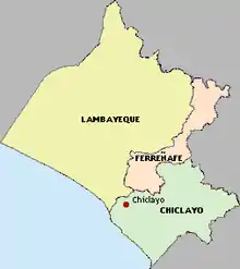Lambayeque (Spanish pronunciation: [lambaˈʝeke]) is a department in northwestern Peru known for its rich Moche and Chimú historical past. The region's name originates from the ancient pre-Inca civilization of the Lambayeque. It is the second-smallest department in Peru after Tumbes, but it is also its most densely populated department and its eighth most populous department.