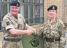 - "First UK female Army Reservist to become a General Officer appointed". British Army. Andover. 11 March 2020. Retrieved 15 March 2020.