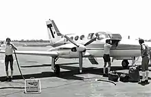 A Transwest Airlines aircraft refuels at Derby Airport in 1979