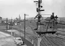 The railways were nationalised in 1948. Duke Street goods yard was closed in 1948, and the former Stafford and Uttoxeter Railway route closed in 1951. However through freight between Colwick and Burton on Trent was still buoyant.[28] Meanwhile passenger business sank further, and the passenger service between Derby and Nottingham was discontinued on 7 September 1964.[29][30]