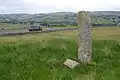 The route passes north into Redesdale and thence into the Cheviot Hills, where there are the remains of marching forts at Fourlaws, West Woodburn (Habitancum), Rochester (Bremenium), and at Chew Green.[20] Brementium was the last stop listed for Antonine Itinerary, but the Roman road's remains now lead further, past the present Anglo-Scottish border at Carter Fell near the present A68 road. Nearby, there are the remains of a camp at Pennymuir.[21] Further on, well-preserved sections of the road form part of St Cuthbert's Way to Trimontium near Melrose. There, the route crosses the Tweed and follows the Leader Water to the foot of the Lammermuirs, where there is evidence of Roman forts near Oxton.